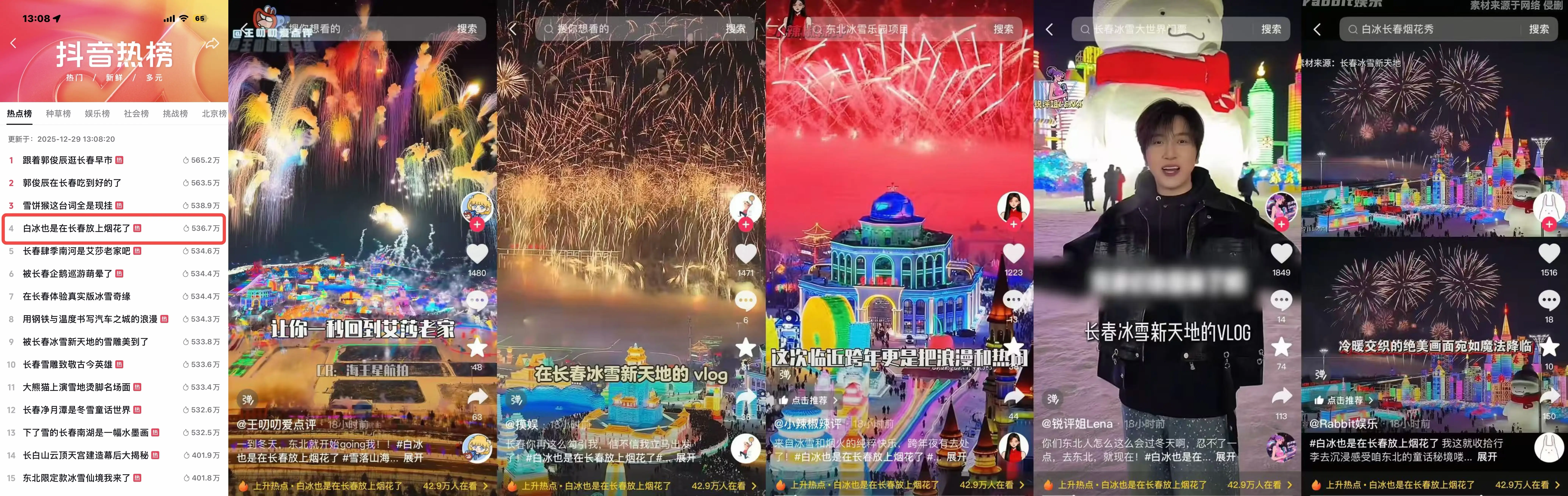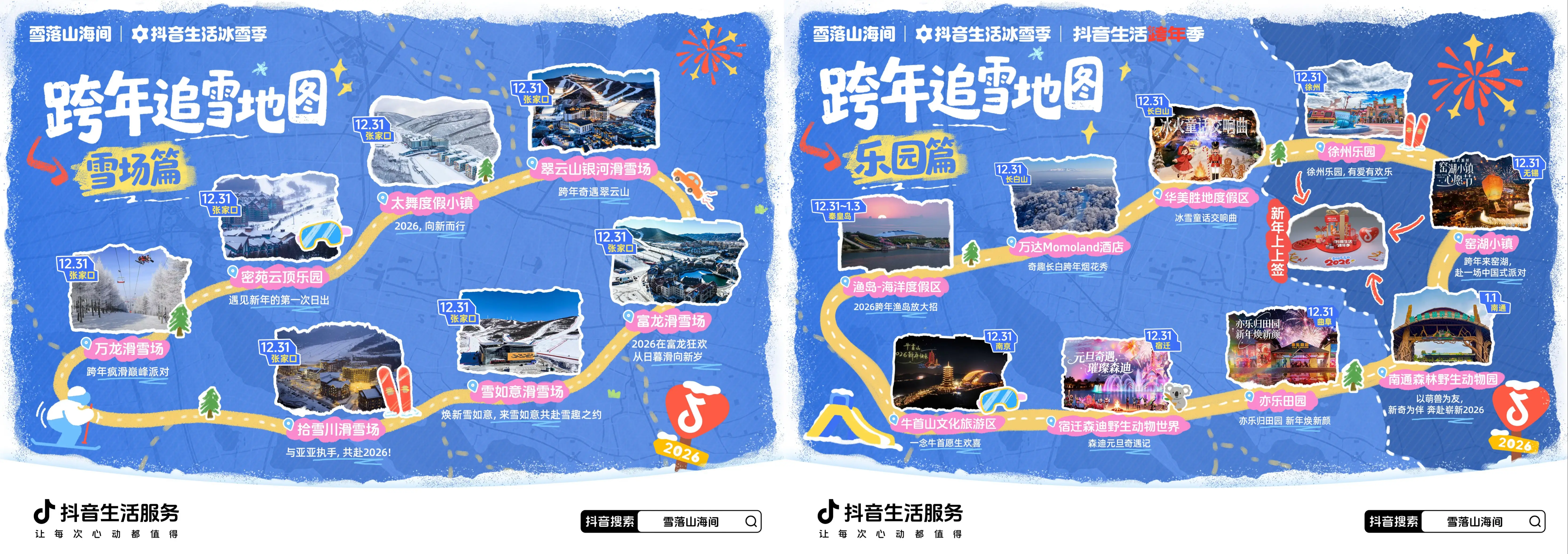 从线上精准种草到线下沉浸体验,从日常追雪乐趣到跨年专属仪式,抖音生活服务「雪落山海间」冰雪季系列活动,以明星、商家、达人的多维联动,连接用户与北方冰雪之美,不仅为用户解决了冬季出行的核心痛点,更让北方冰雪旅行有了更多选择、更足乐趣、更深刻的记忆点,为冰雪旅游市场注入了全新活力。