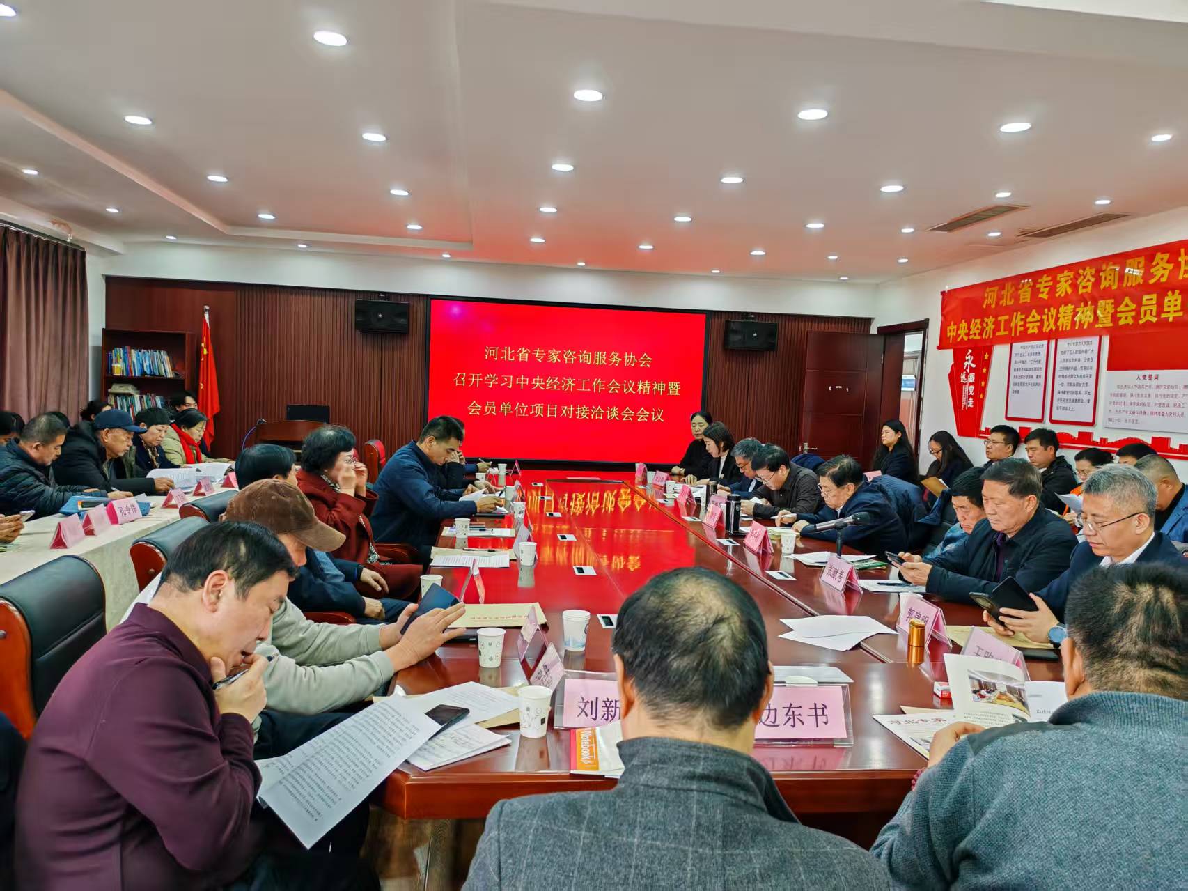 12月30日,河北省专家咨询服务协会在石家庄市召开学习中央经济工作会议精神暨会员单位项目对接洽谈会。会议上,研究学习中央、省委经济工作会议精神,签署8个项目战略合作协议,吸纳 6个会员单位,表扬一批协会工作先进会员单位和专家个人。这是一次统一思想的学习动员会,也是一次成果展示、促进合作的务实会,对于实施“十五五”规划吹响了奋进的冲锋号。